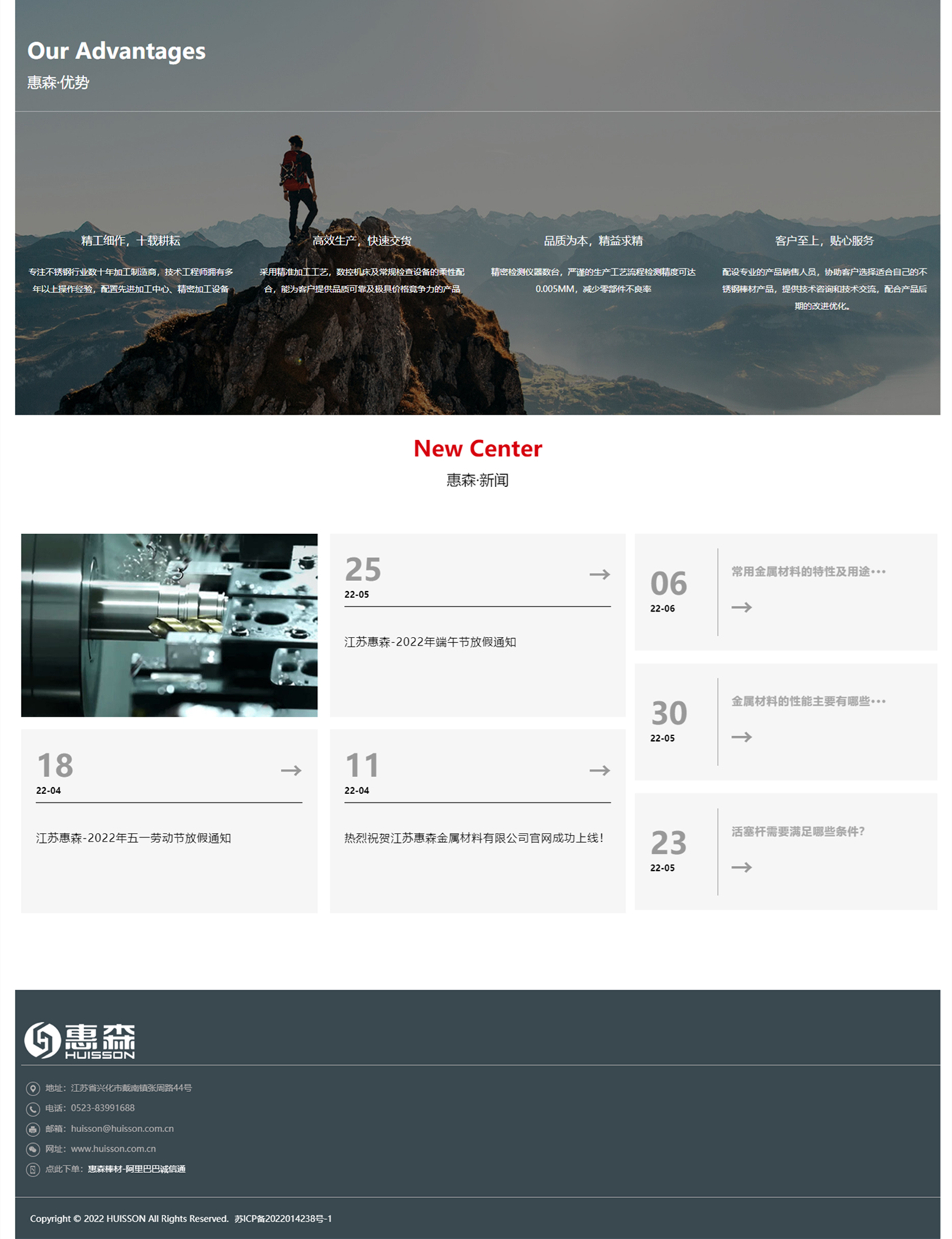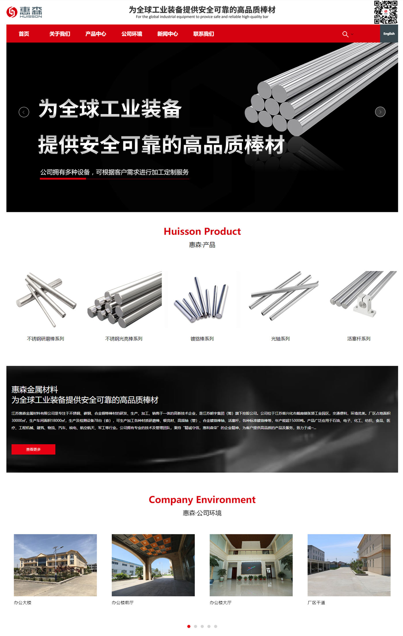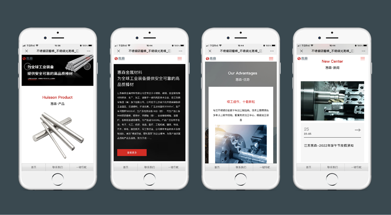 江蘇惠森金屬材料有限公司是專注于不銹鋼、碳鋼、合金鋼等棒材的研發(fā)、生產(chǎn)、加工、銷售于一體的高新技術(shù)企業(yè),是江蘇朗宇集團(tuán)(籌)旗下控股公司。九城科技為江蘇惠森提供了響應(yīng)式網(wǎng)站設(shè)計(jì)及程序開發(fā)服務(wù)。